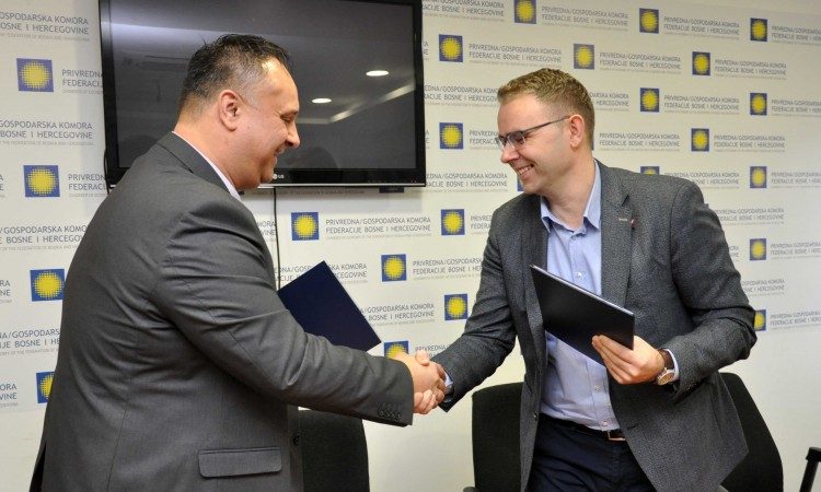 Predsjednik Gospodarske komore Federacije BiH Marko Šantić i predsjednik Asocijacije poduzetnika Hercegovine Damir Vidačk potpisali su u petak u Mostaru okvirni sporazum koji će biti osnova za izradu akcijskog plana.