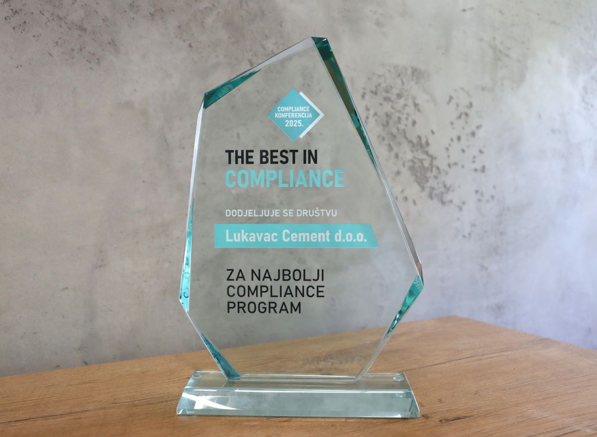 Lukavac Cement je dobitnik godišnje nagrade za "Najbolji Compliance program" na prestižnoj regionalnoj Compliance konferenciji 2025. - Usklađenost u doba promjena, koja je održana krajem septembra u Zagrebu.