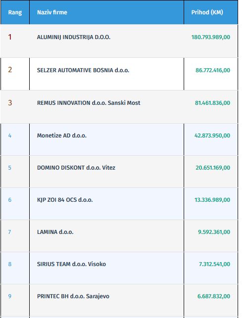 Akta.ba izdvojila je listu firmi uz podatke o njihovim prihodima ostvarenim u 2024. godini.