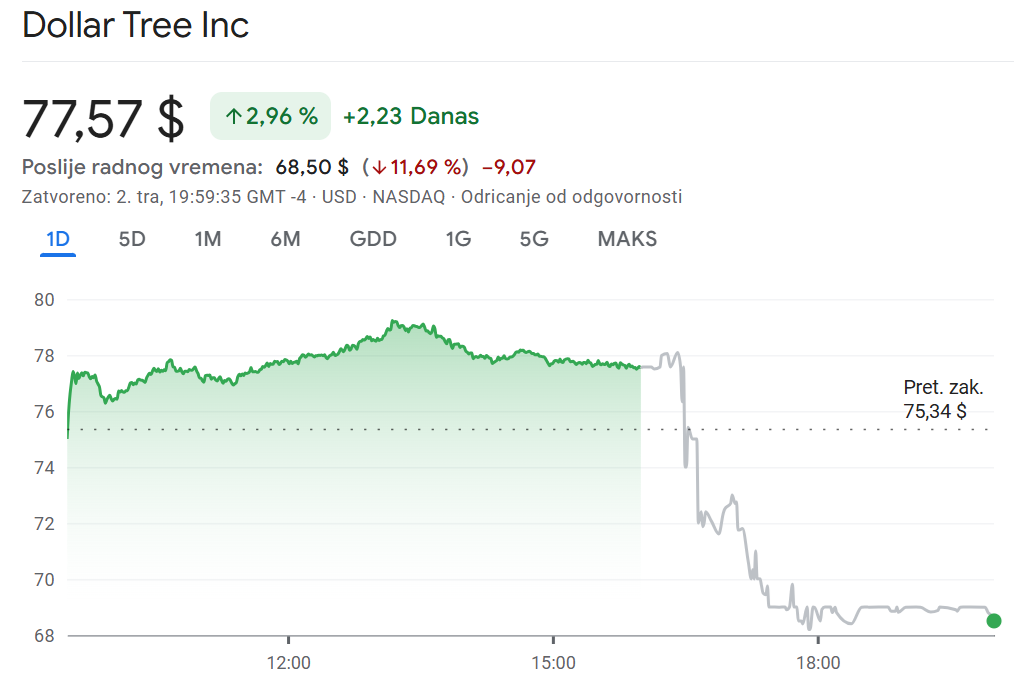 Dionice trgovačkih lanaca koji robu prodaju po sniženim cijenama (koji uvoze veliki dio svojih najprodavanijih artikala) također su pretrpjele velike gubitke. Five Below pao je 13,5%, a Dollar Tree više od 11%.