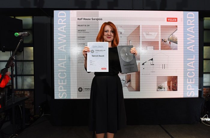 Nagradu je u ime arhitekata koji nisu bili u prilici prisustvovati ceremoniji,preuzela direktorica kompanije VELUX Bosna i Hercegovina Sanela Salihbegović.