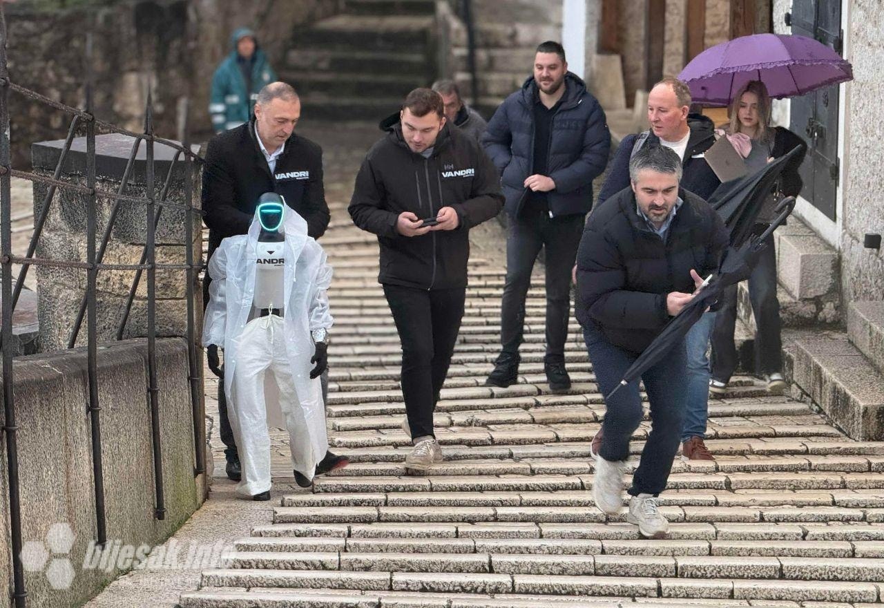 Jutros je prvi humanoidni robot prošetao Starim mostom, simbolično povezujući tradiciju i budućnost.