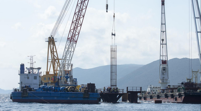 Most je tako provirio iz mora za manje od godinu dana otkako je kineska tvrtka China Road and Bridge Corporation (CRBC) uvedena u posao.