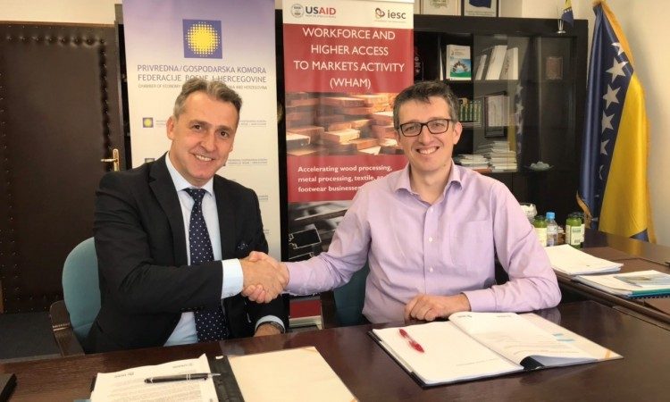 Ugovor su potpisali potpredsjednik PKFBiH Mirsad Jašarspahić i direktor projekta Fuad Čurčić. Radi se o nastavku uspješne poslovne saradnje započete prethodne godine kada je USAID WHAM projekt također podržao aktivnosti koje provodi PKFBiH, odnosno nastup bh. kompanija na prestižnom sajmu IZB2018 u njemačkom gradu Wolfsburg.