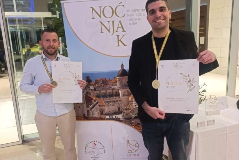 Kompanija AgroHerc Organic iz Mostara osvojila je dvije zlatne medalje na međunarodnoj manifestaciji "Noćnjak 2026", i to za ekstra djevičansko maslinovo ulje sorti Oblica i Istarska bjelica.