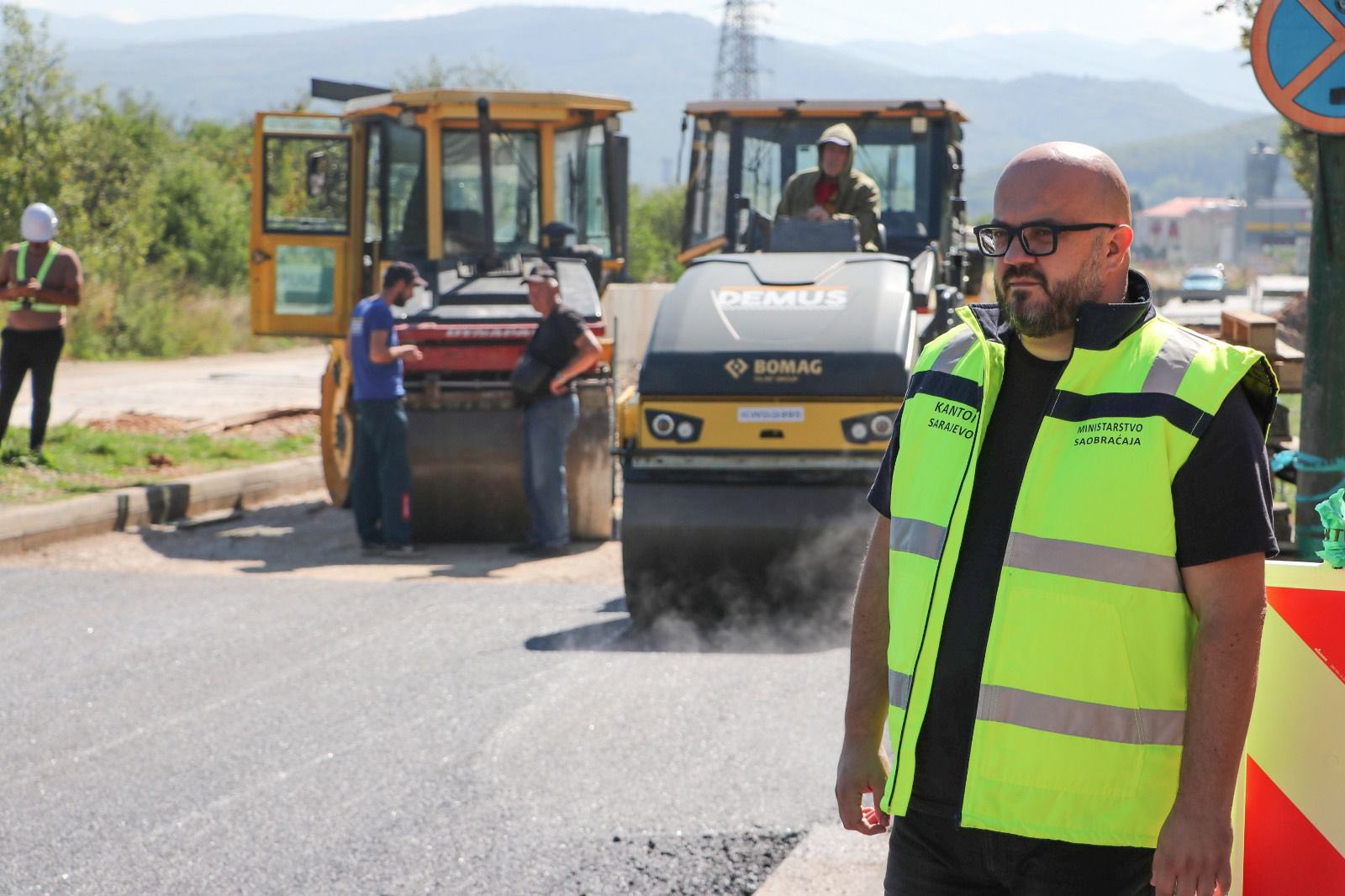 Šteta je s inženjerima razgovarao o radovima koji se realizuju na svakoj od dionica, a razlog posjete je bio početak asfaltiranja saobraćajnice u Hrasnici, koja se obnavlja u sklopu rekonstrukcije pruge.