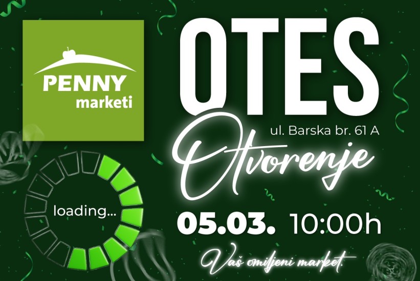 Novi Penny market u Otesu, na lokaciji ul. Barska 61A, svečano se otvara 5. marta sa početkom u 10.00 sati.