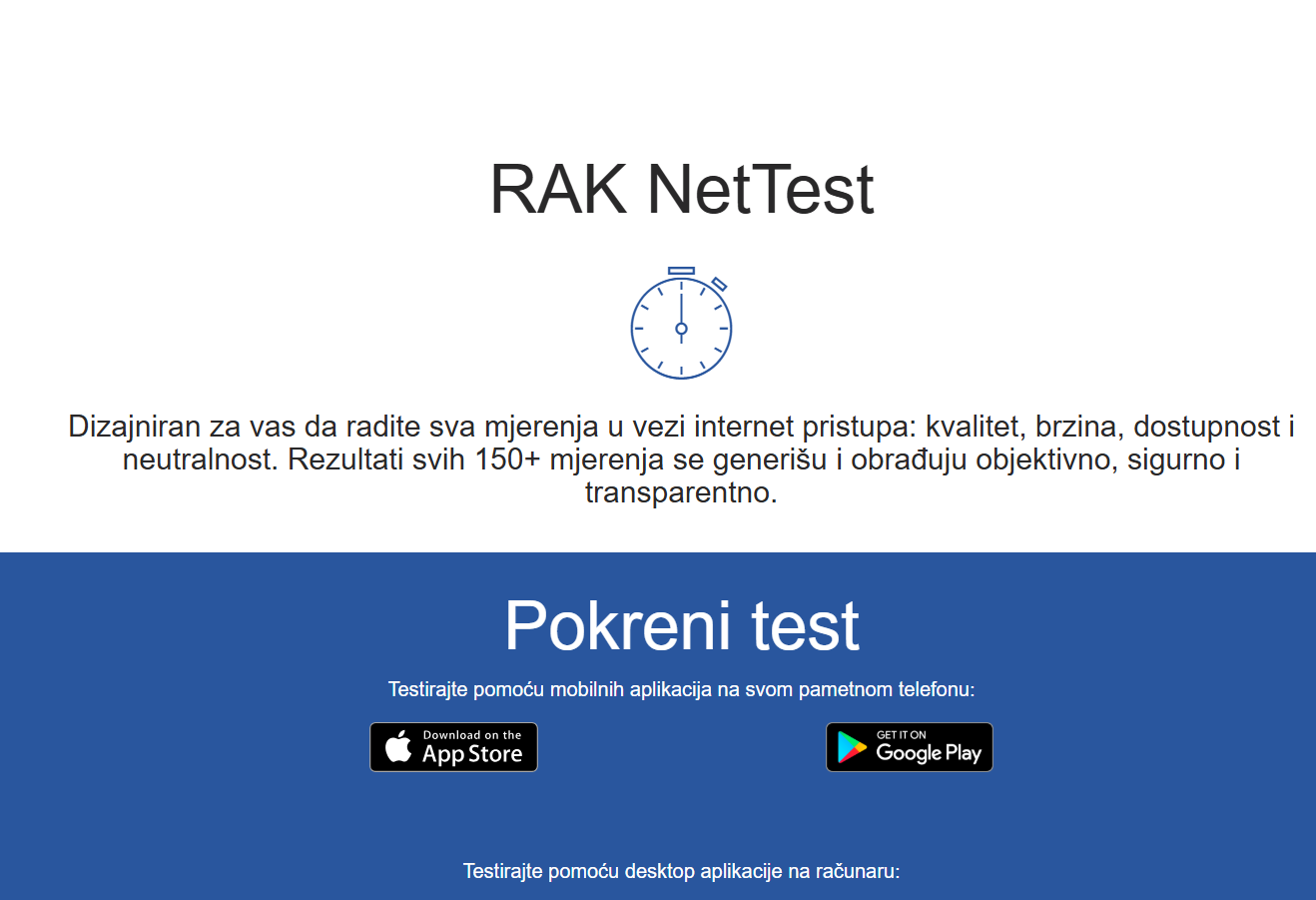 Za mjerenje brzine interneta, korisnici mogu da koriste aplikaciju koju je razvila Agencija, „RAK NetTest” ( https://nettest.rak.ba/home ), čiji su rezultati mjerenja odgovarajući dokaz u postupku rješavanja prigovora na ispunjenost ugovorom definisane brzine širokopojasnog pristupa internetu putem fiksne elektronske komunikacijske mreže.